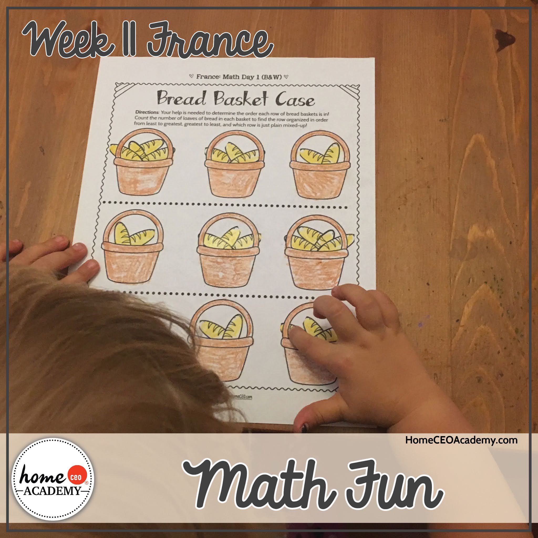 Being active is so important for little (and big) ones! One of our gross motor games for the France unit was a baguette dash. Kylie pretended she had just picked up a fresh, hot baguette from a bakery in Paris and needed to race home to share it while it was still hot!