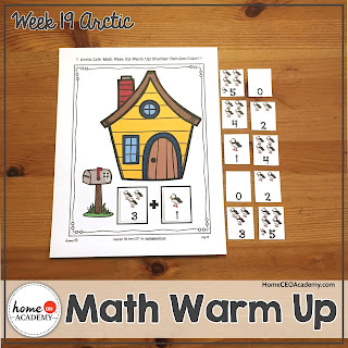 One of our math wake up, warm up activities had us adding up puffins to put them in the correct houses.