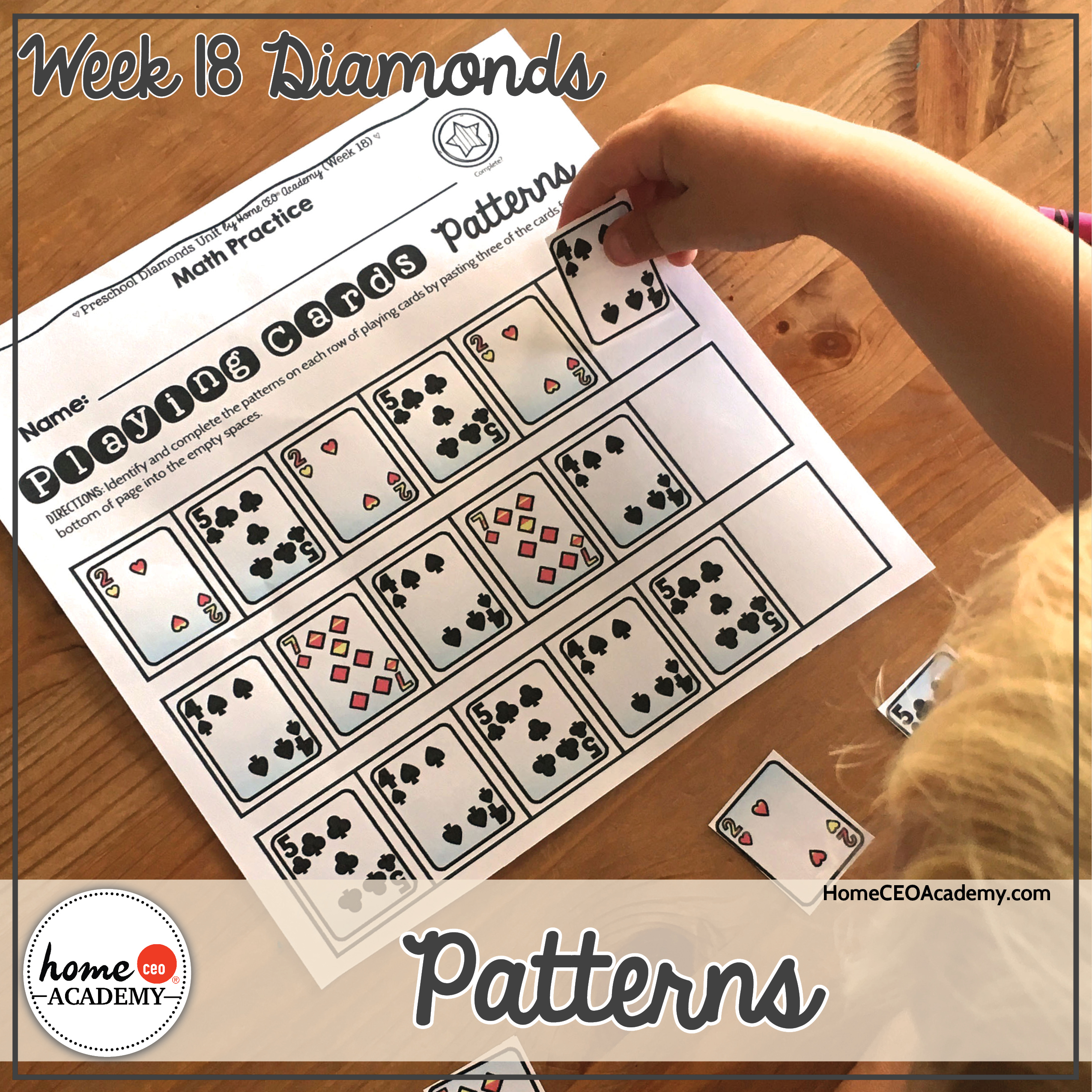 We are on a roll with patterns this week! If you happen to have a deck of playing cards in the house, this activity would make a great segue into teaching your little one Go Fish!